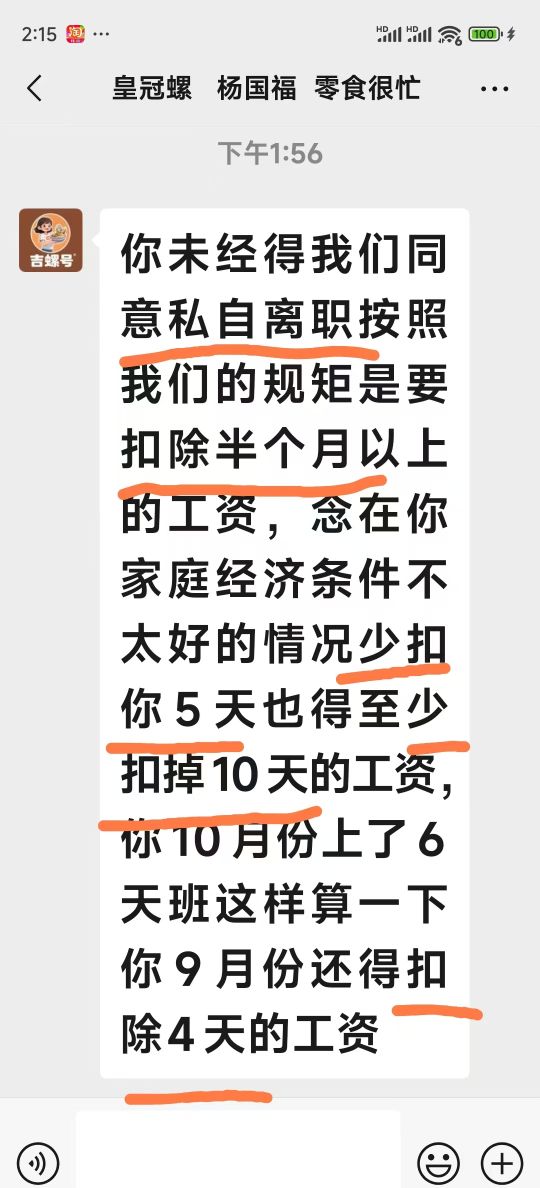 现在老板说他私自离职 要扣工资