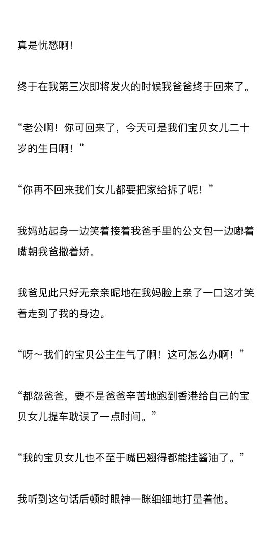 看着从厨房里拿着锅铲替自己爸爸抱不平的妈妈我顿时无奈地摇了摇头。