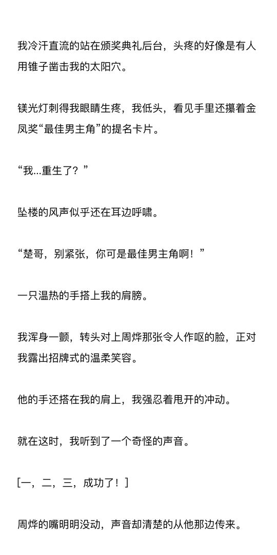 镁光灯刺得我眼睛生疼,我低头,看见手里还攥着金凤奖“最佳男主角”的提名卡片。