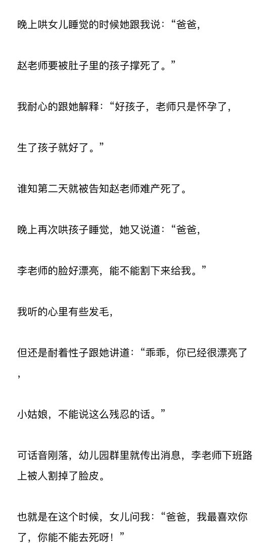 也就是在这个时候,女儿问我:“爸爸,我最喜欢你了,你能不能去死呀!”