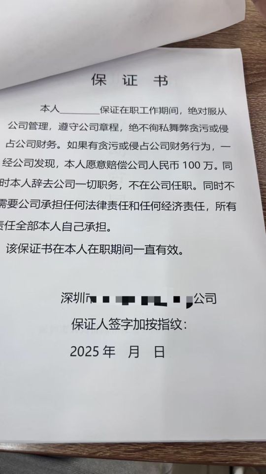入职仓库管理员,但要签保证书。其中一条是赔偿100万,会不会有坑?