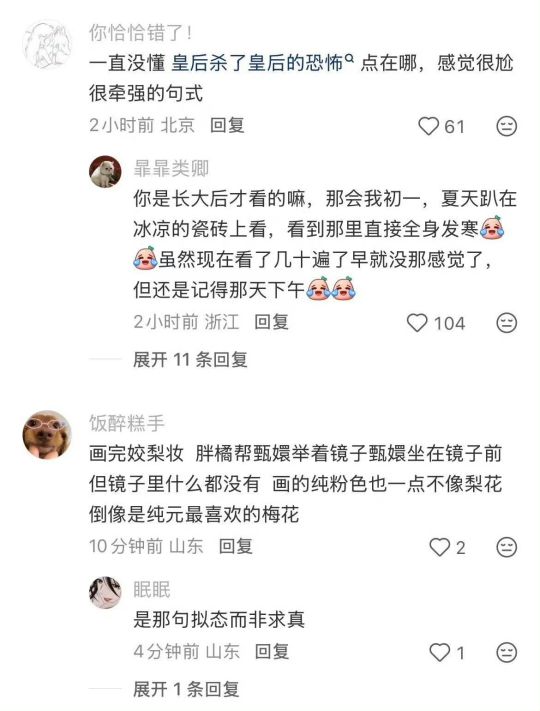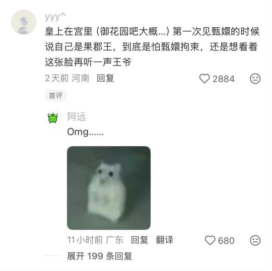 还有一个不恐怖的,剪小像之后果郡王后面看见甄嬛在玩水,流朱说这是莞贵人,但是果郡王已经知道她是莞贵人了后还要再问一句她叫什么,她说:贱名恐污尊耳,然后果郡王笑了,他笑是因为他去倚梅园那天没有见到园子里的人,但是听见了皇上问她你叫什么名字,她的回答也是贱名恐污尊耳,他再问一遍就是确认甄嬛是不是倚梅园那个人,因为这句话可能习惯回答,所以得到回答之后果郡王笑了