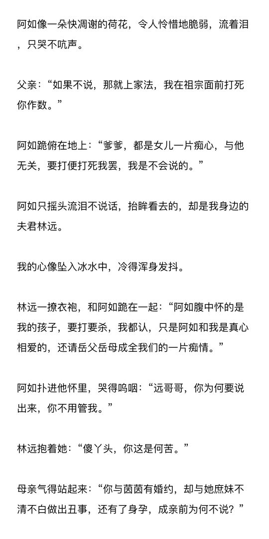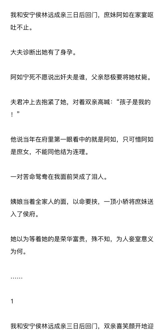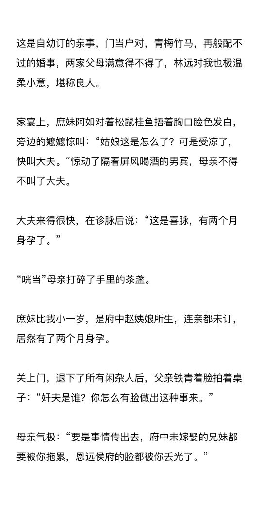庶妹比我小一岁,是府中赵姨娘所生,连亲都未订,居然有了两个月身孕。