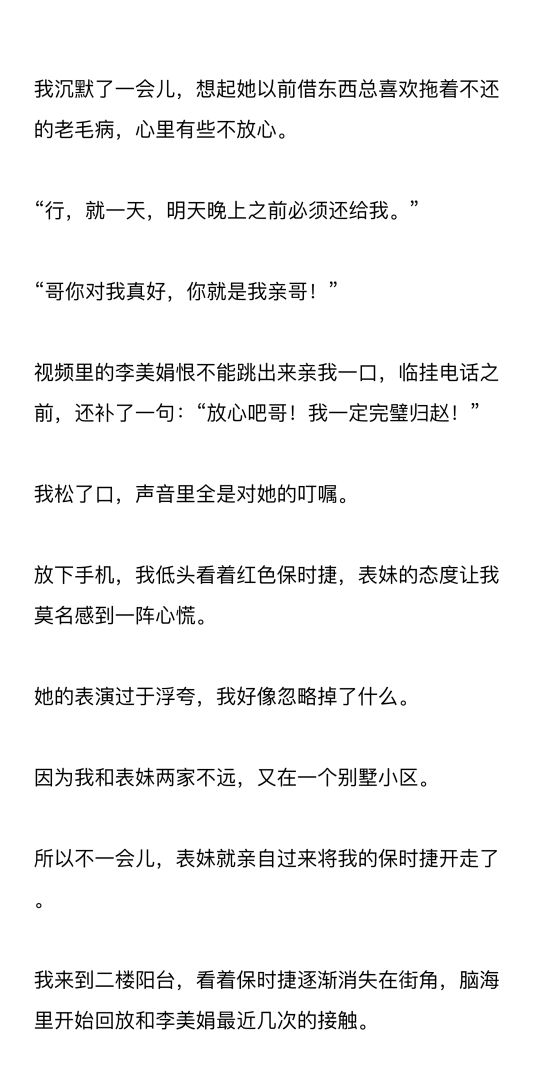 表妹找我借了一辆价值1200万的保时捷,保证说只是商务应酬撑面子,很快还给我。