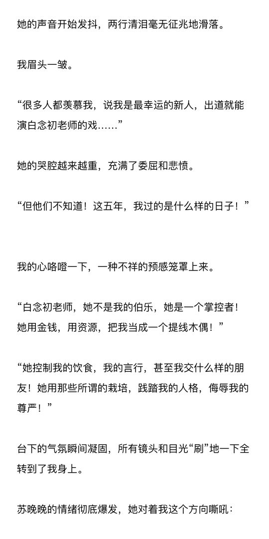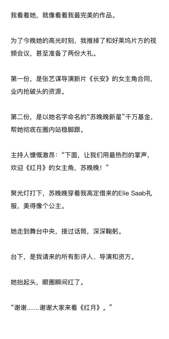 主持人慷慨激昂:“下面,让我们用最热烈的掌声,欢迎《红月》的女主角,苏晚晚!”