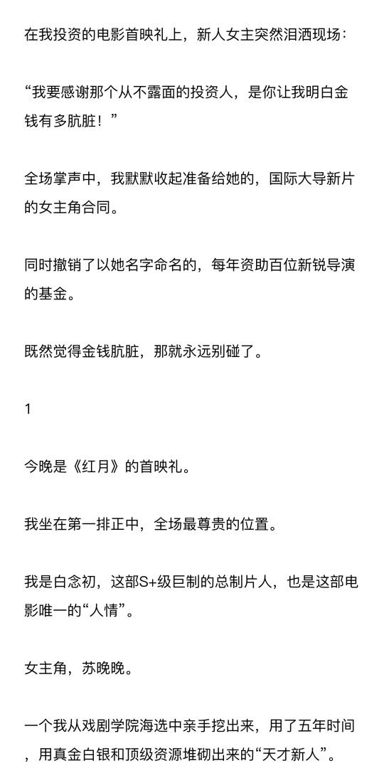 “我要感谢那个从不露面的投资人,是你让我明白金钱有多肮脏!”