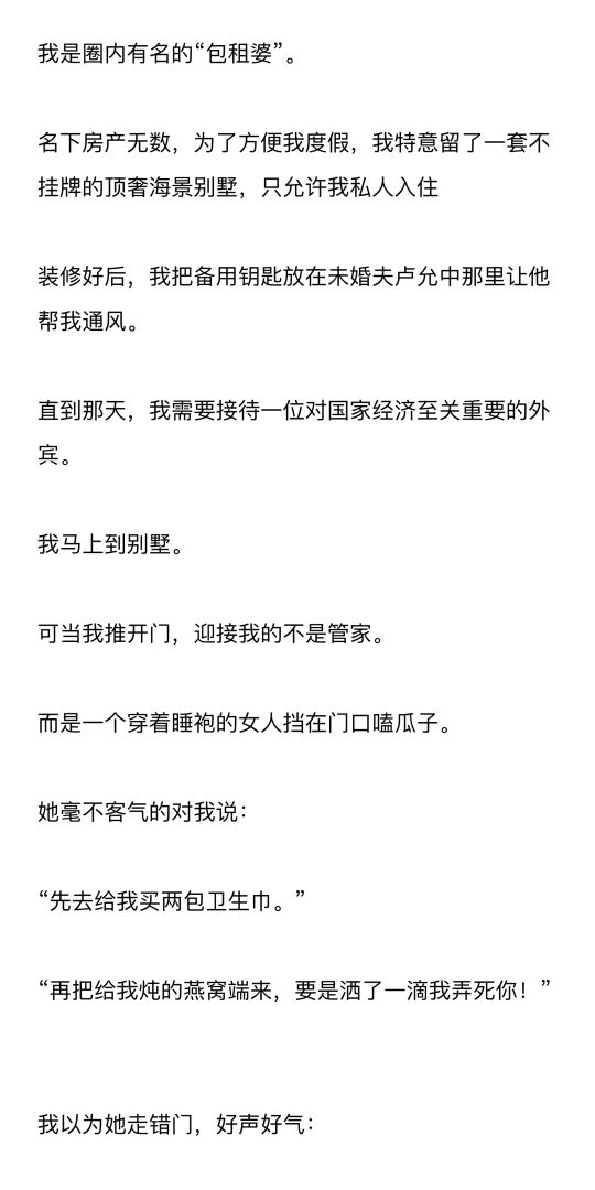 名下房产无数,为了方便我度假,我特意留了一套不挂牌的顶奢海景别墅,只允许我私人入住
